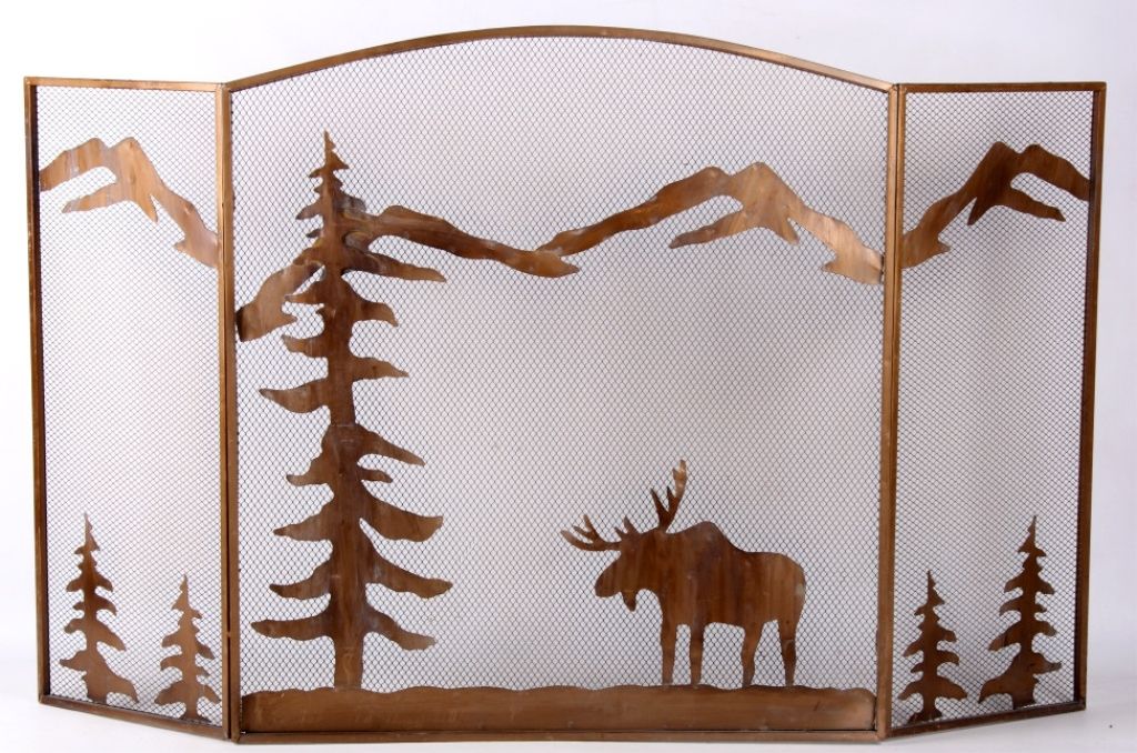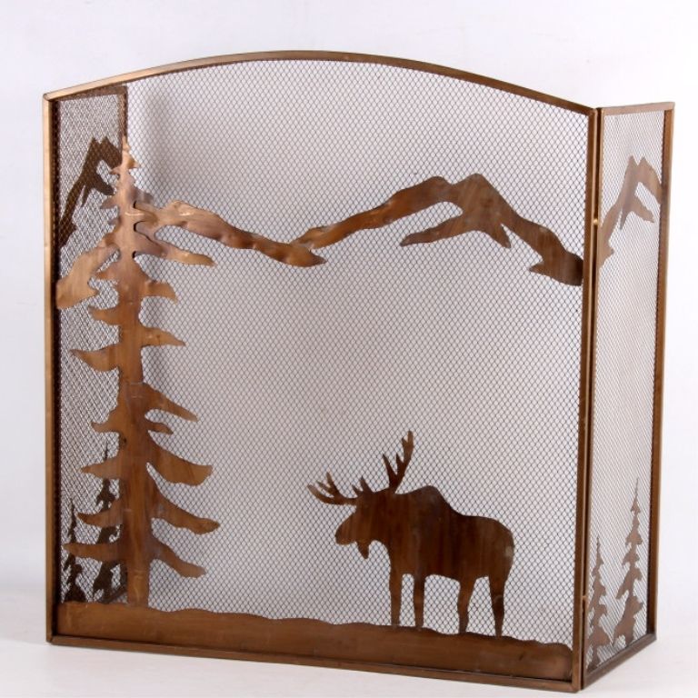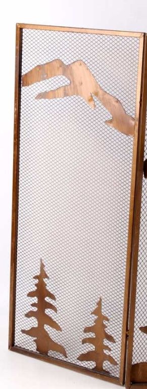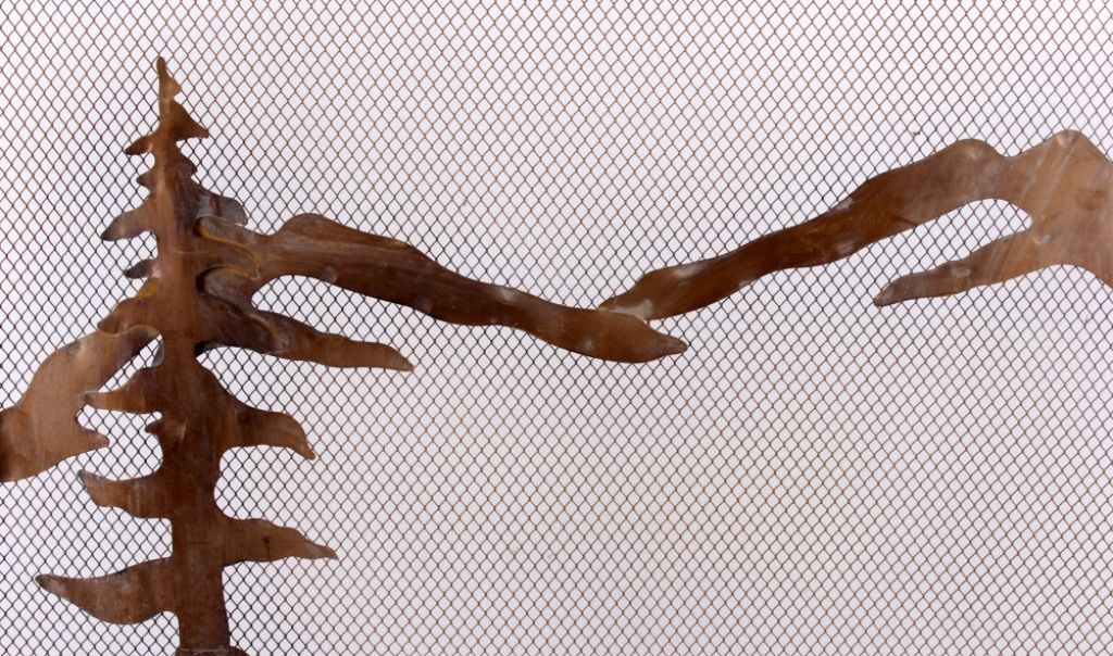 This piece is a custom made copper fireplace screen. This beautiful lot is made of copper including the shaped decorations and the screen. This a well made piece and constructed for any home. Measures52.5"x32.5".