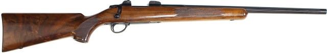 rifle built on Sako L461 action SN 150426, 22" fluted Shilen barrel, hinged floor plate, scope bases and deluxe checkered walnut stock. Very good condition, some light handling and use marks only to wood. Modern. Est. 1250-1800