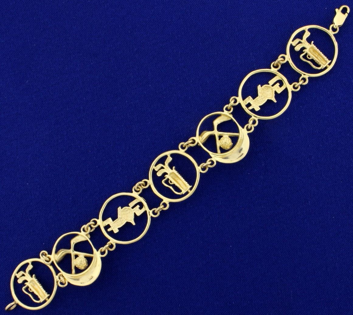 In 14k yellow gold. 6 7/8" long. 7/8" wide with lobster clasp. 21.1g.