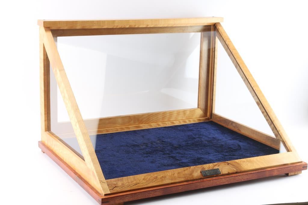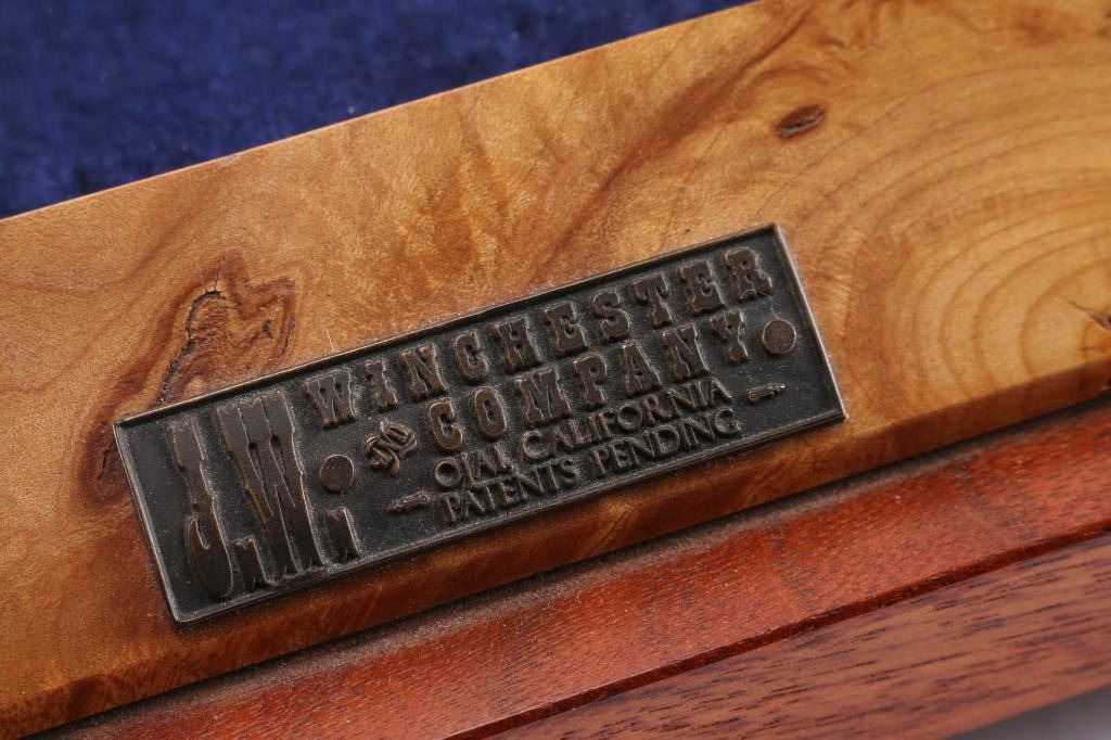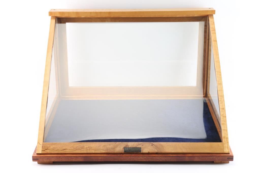 With a J. W. Winchester Co. label (not made by the Winchester Co.) Blue velvet lining, opens in back. Measures 16" tall, 26" wide, 20 1/2" deep. SHIPPING MUST BE ARRANGED BY BUYER.