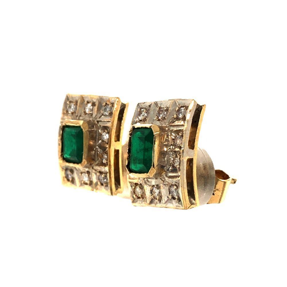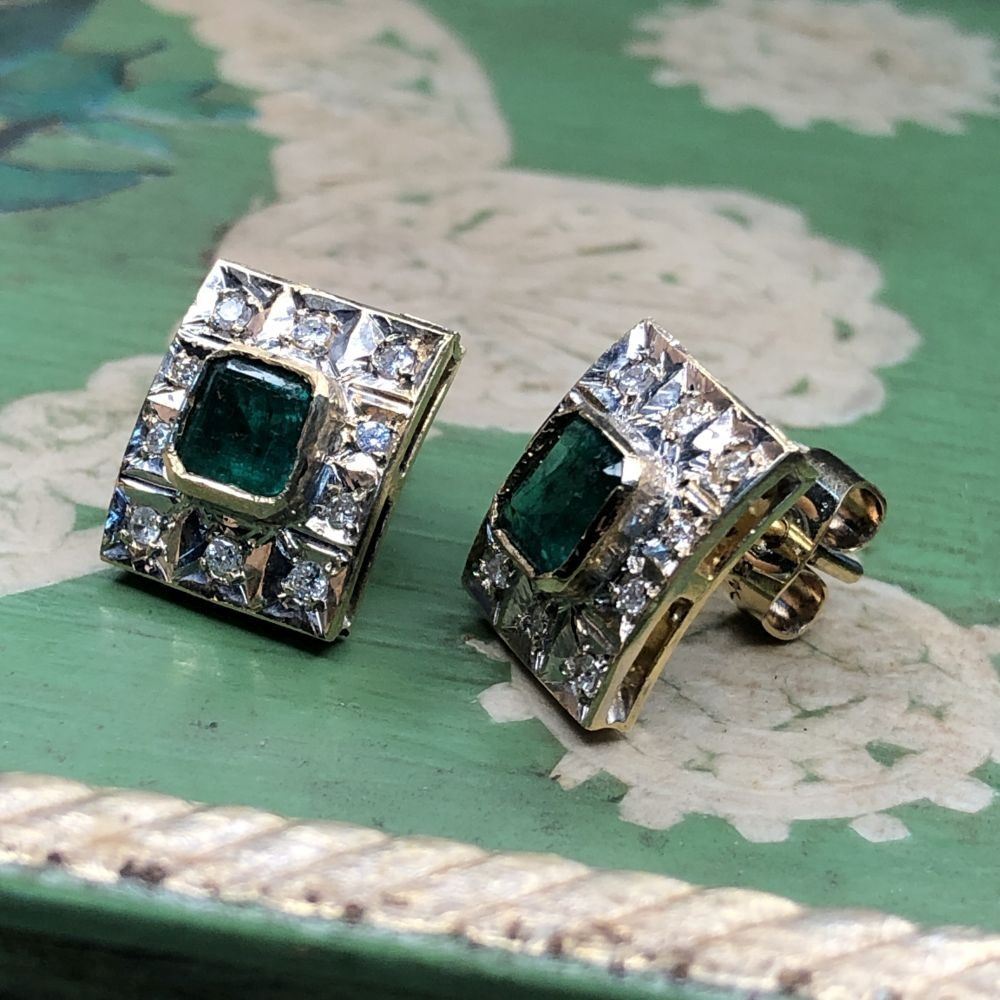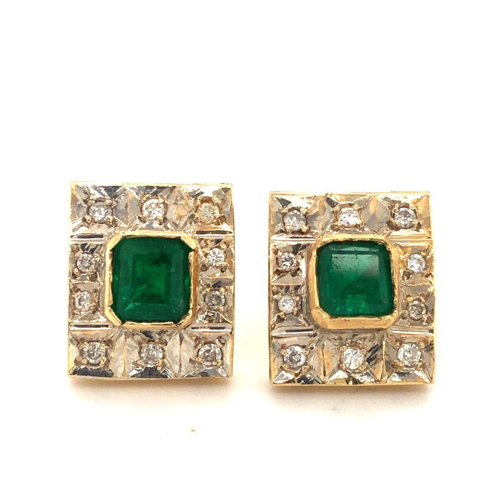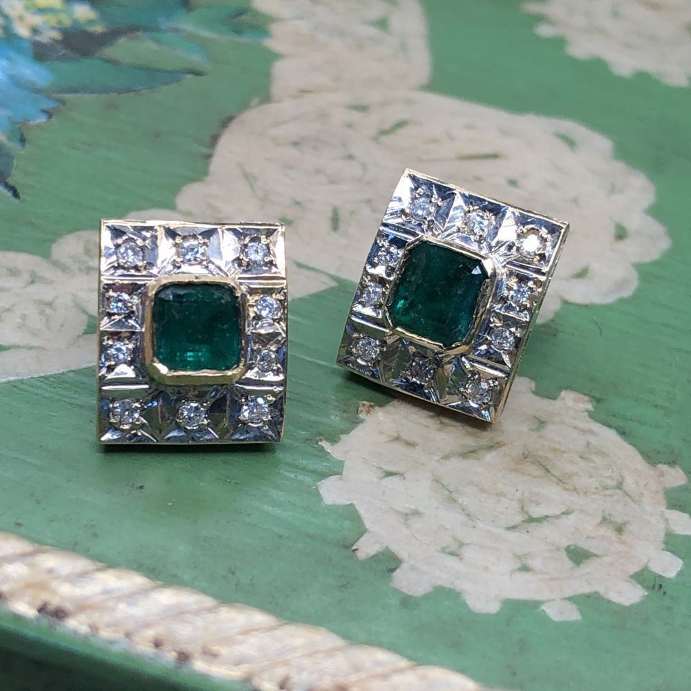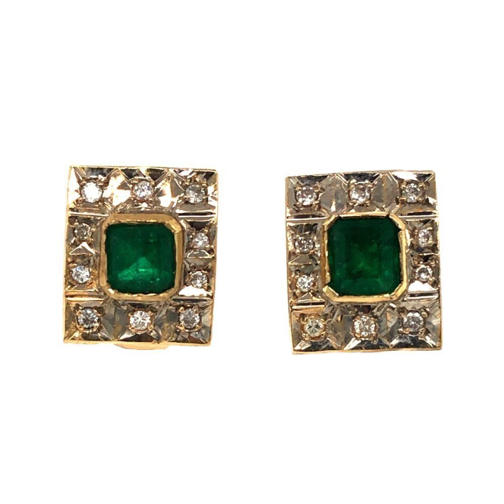 TITLE DESCRIPTION: Custom Emerald and Diamond Frame Estate Earrings