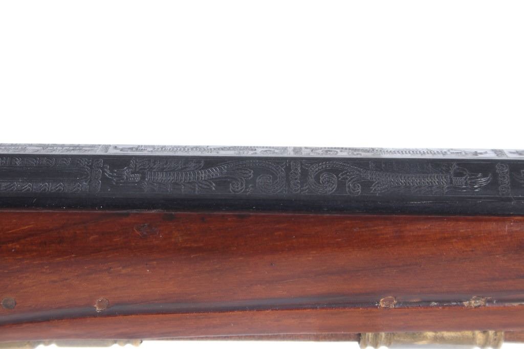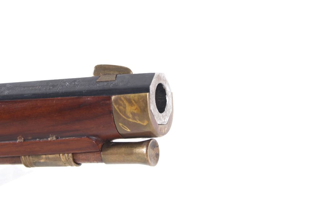 all important sparking flint. The trigger guard, ramrod thimbles, ramrod tips, forend cap and side plate