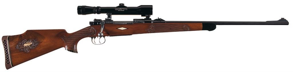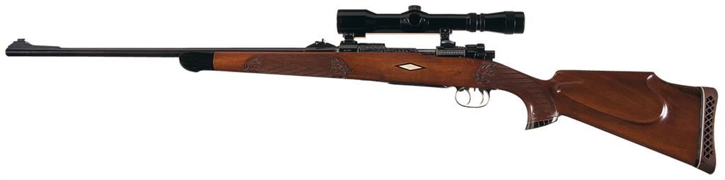 Custom Engraved "Helmut Dinger Kaiserslautern" Marked Mauser Bolt Action Rifle with Scope
