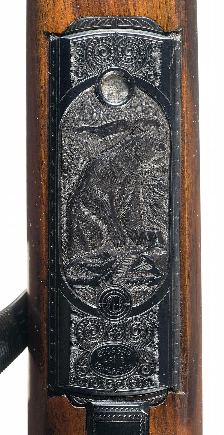 Condition: Excellent as custom embellished with 98% of the blue finish remaining with some minor muzzle wear, some minor handling marks and limited minor spotting contained to the barrel. The stock is excellent with some scattered minor pressure marks and dings. There are some minor blemishes in the overall crisp checkering.