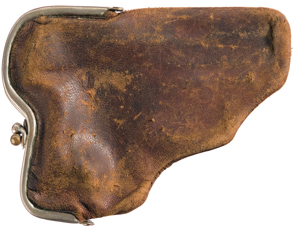 Manufactured in 1935, this pistol was subsequently custom embellished. The left side of the slide has the two line Hartford address/patent dates with the Rampant Colt behind the serrations and "COLT AUTOMATIC / CALIBRE 25" on the right side. Over 95% of the metal surfaces feature a floral scroll engraving on a punch dot background, with a checkered engraved pattern on the grip safety. The engraving is enhanced with gold inlaid borders on the flat surfaces of the slide. All blue finish, with ivory grips with Colt medallions at the tops. Complete with 2 extra unmarked blued magazines and a leather coin purse holster.