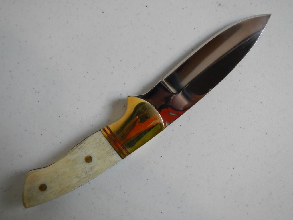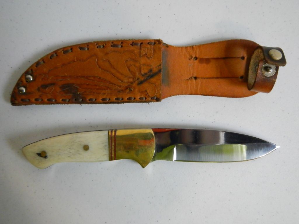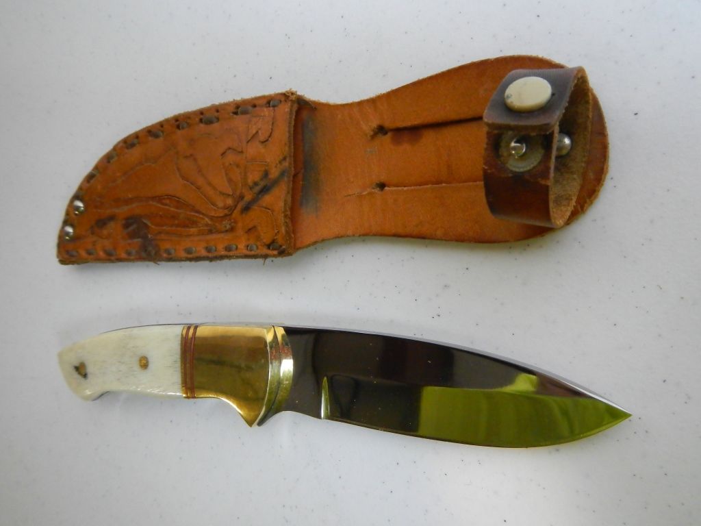 Custom Fixed Blade Knife Custom Fixed Blade Knife with Antler Handle and Leather holder. This Knife is in Excellent Condition.