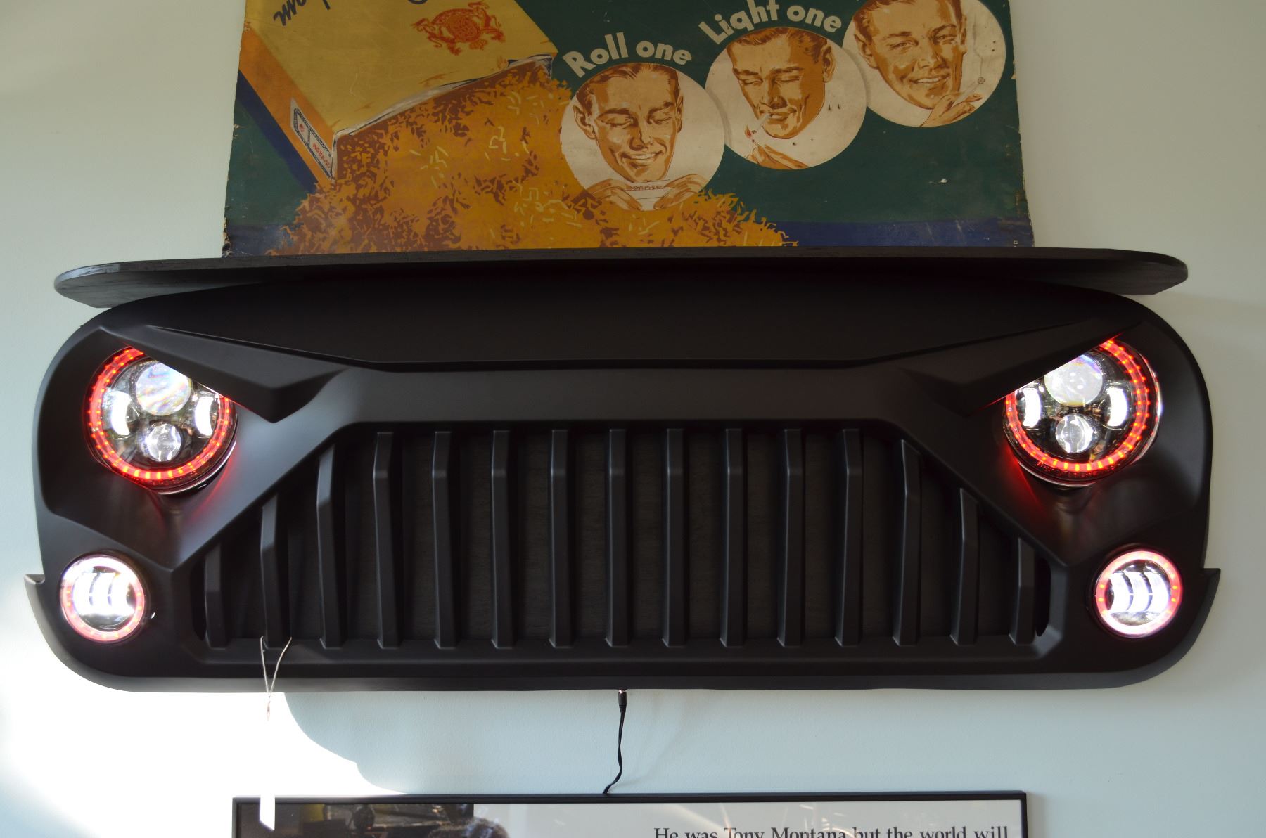 Brand New custom made wall shelf with LED headlight/Fog Light Halo Kit. Color and function control: LED, Bluetooth, downloadable app. Headlight: On/Off Switch. Animation effect: Colorful gradient, all kinds of monochrome, double color gradient, flashing jump, follow the rhythm of the music and more!