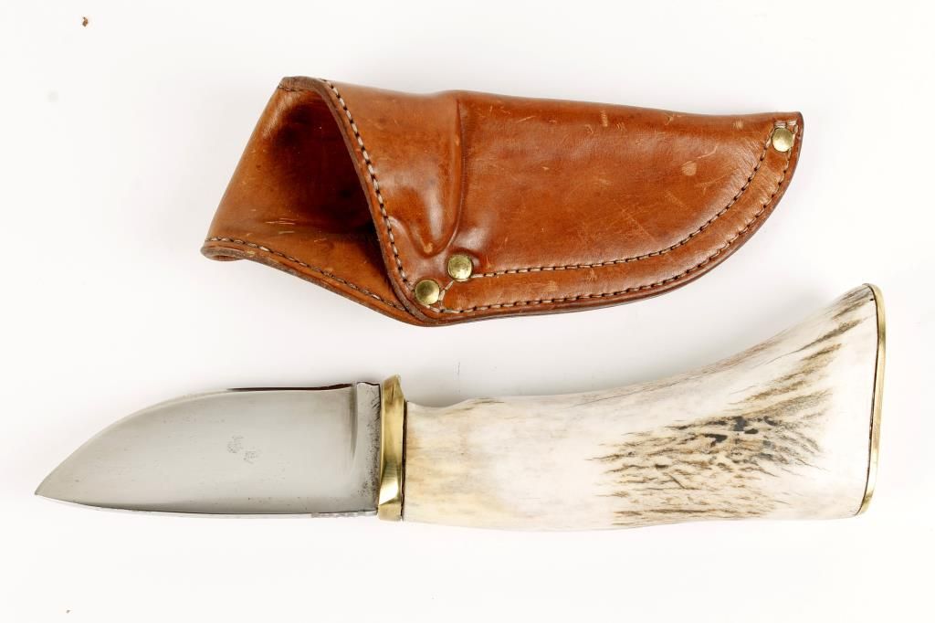 Nice antler handle, high polish blade 3 3/4", overall 9 1/2".