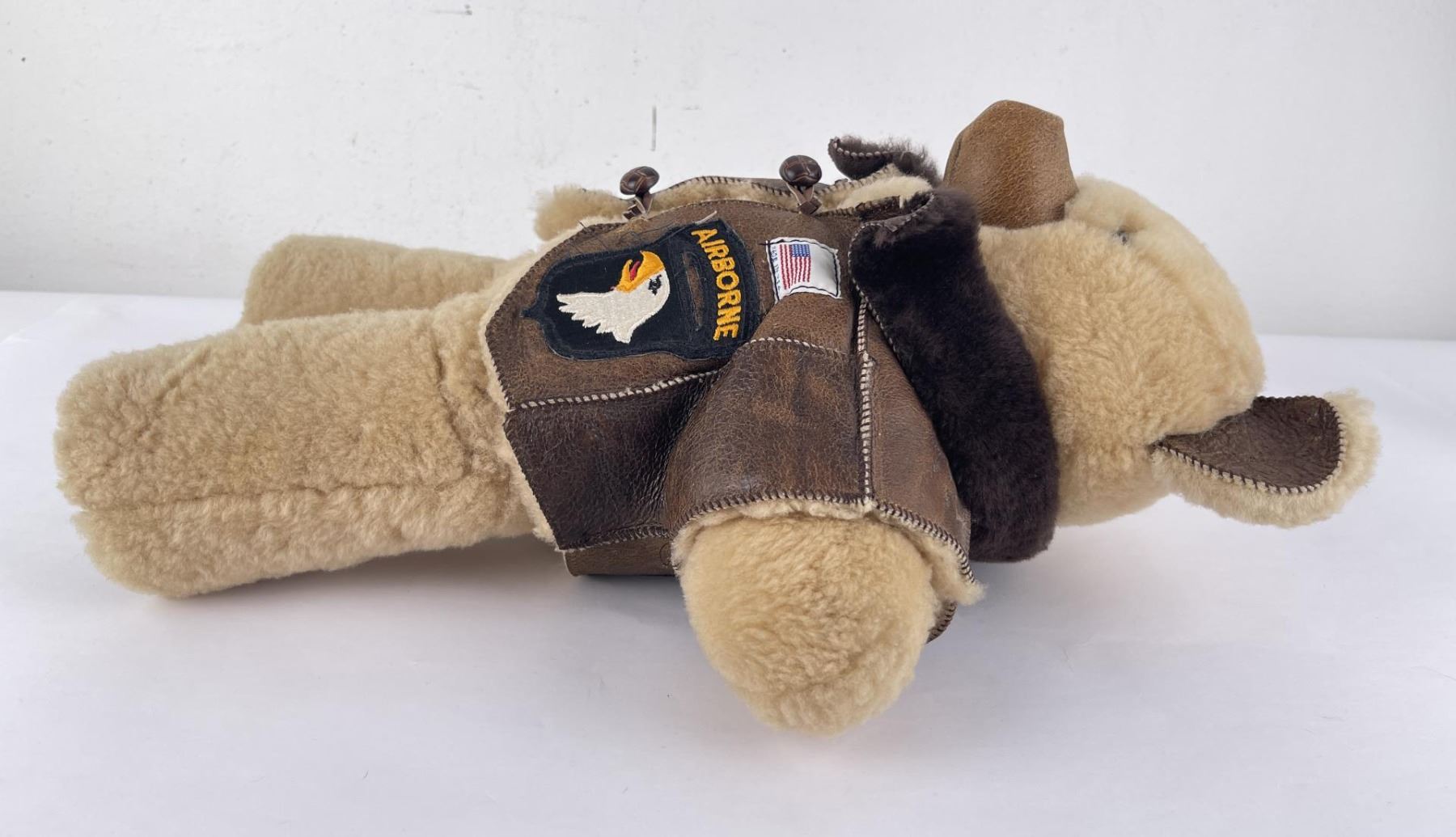 Very neat bear. Made from shearling. 18 1/2" tall.