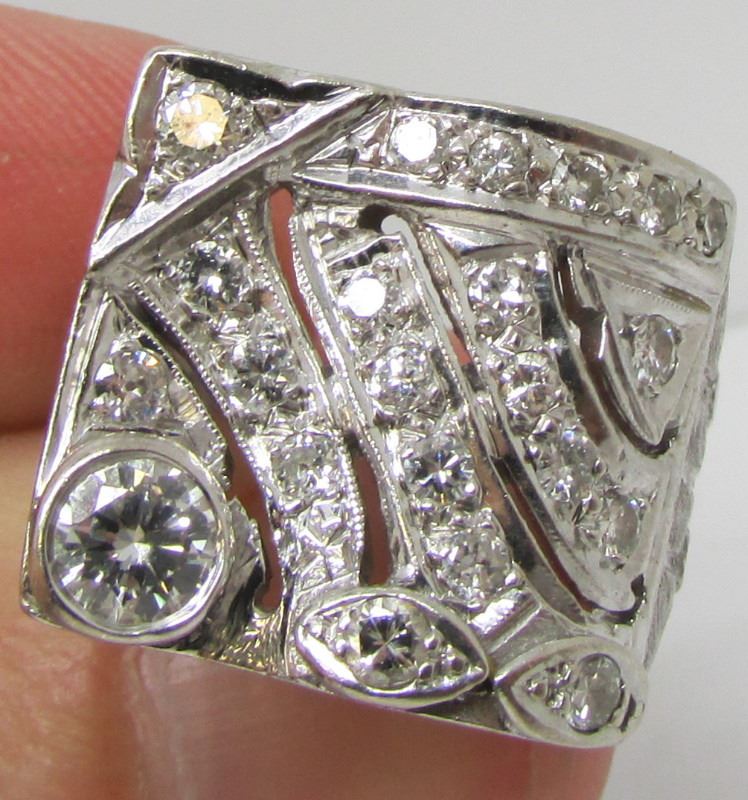 Directly From A Safety Deposit Box -- Large Custom Made 14 Kt White Gold & Diamond Fashion Ring -- 1.05CTW - Diamond Quality SI-VS, G-H -- Finger Size 4 3/4 -- Ring Is Sizeable -- Appraised Value $ 6150