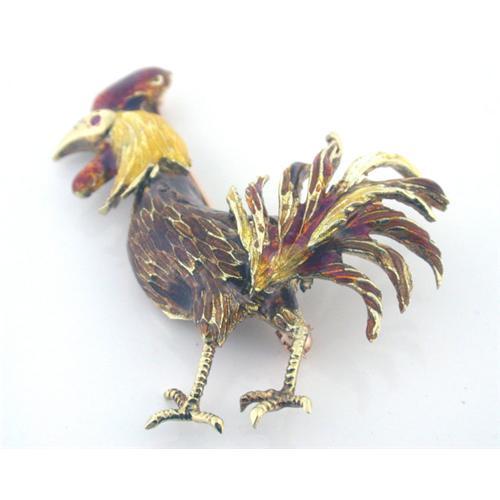 <tr><td>Title:Custom Made 18k Gold Enamel Ruby Gamecock Pin </td></tr>