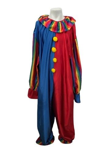 Custom made, rainbow colored clown costume. Built in and matching collar with buttons made of yellow cotton balls. The perfect vintage clown costume to stand the test of time.