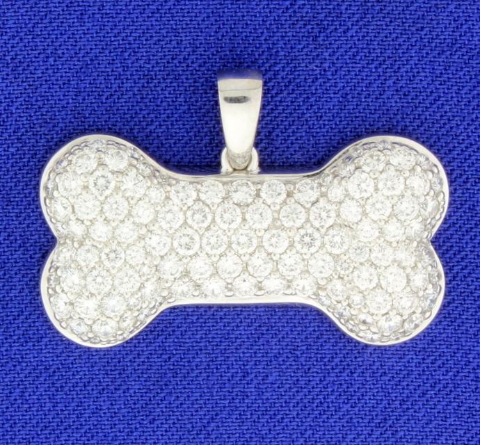 In 18K white gold, it contains 3cts total weight of very high quality .01 to .03ct diamonds-VS clarity/E color. It is 1 1/4 inches long. 9.2g