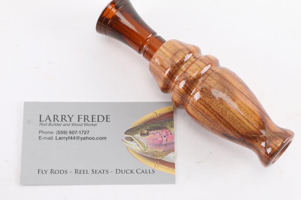 Reed is timber, double reed from Echo Calls. Wood is California Pistachio.