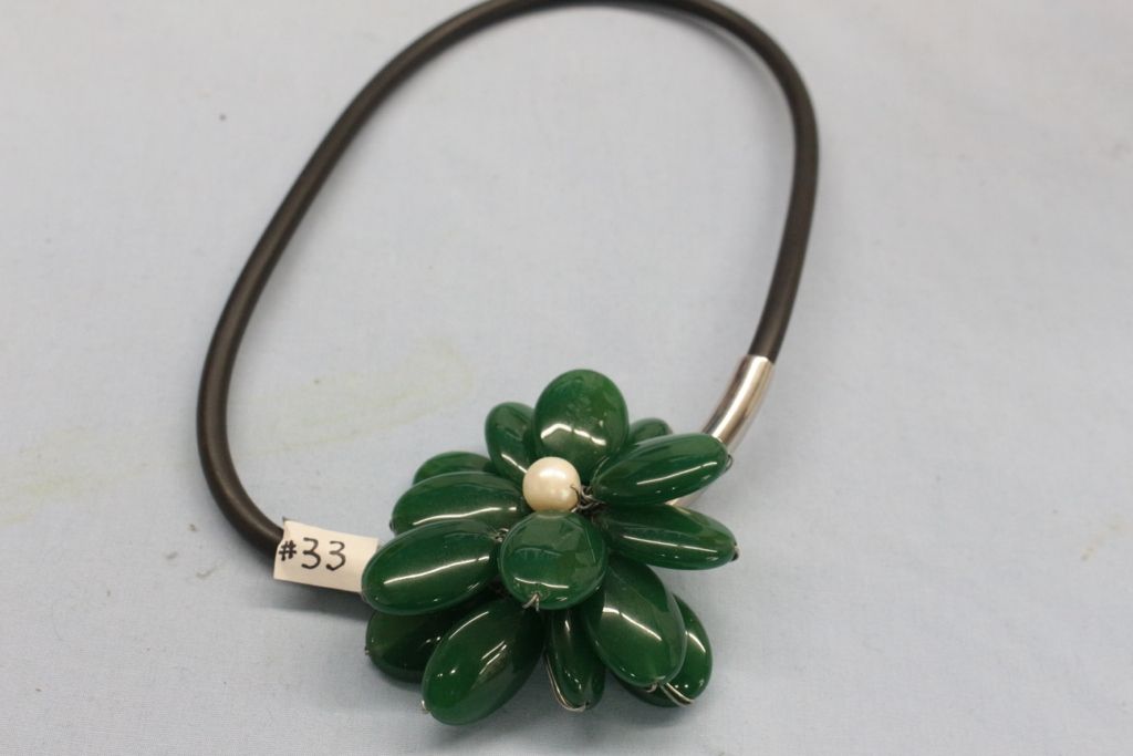 Custom Made Jade and Freshwater Pearl Necklace With Sterling Silver Mount and Magnetic Clasp