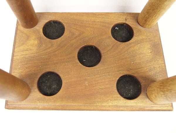 Custom Made Oak Cane Stand by Earl Mann, measures 19.75''H x 8''W x 5.5''Deep, 5 holes
