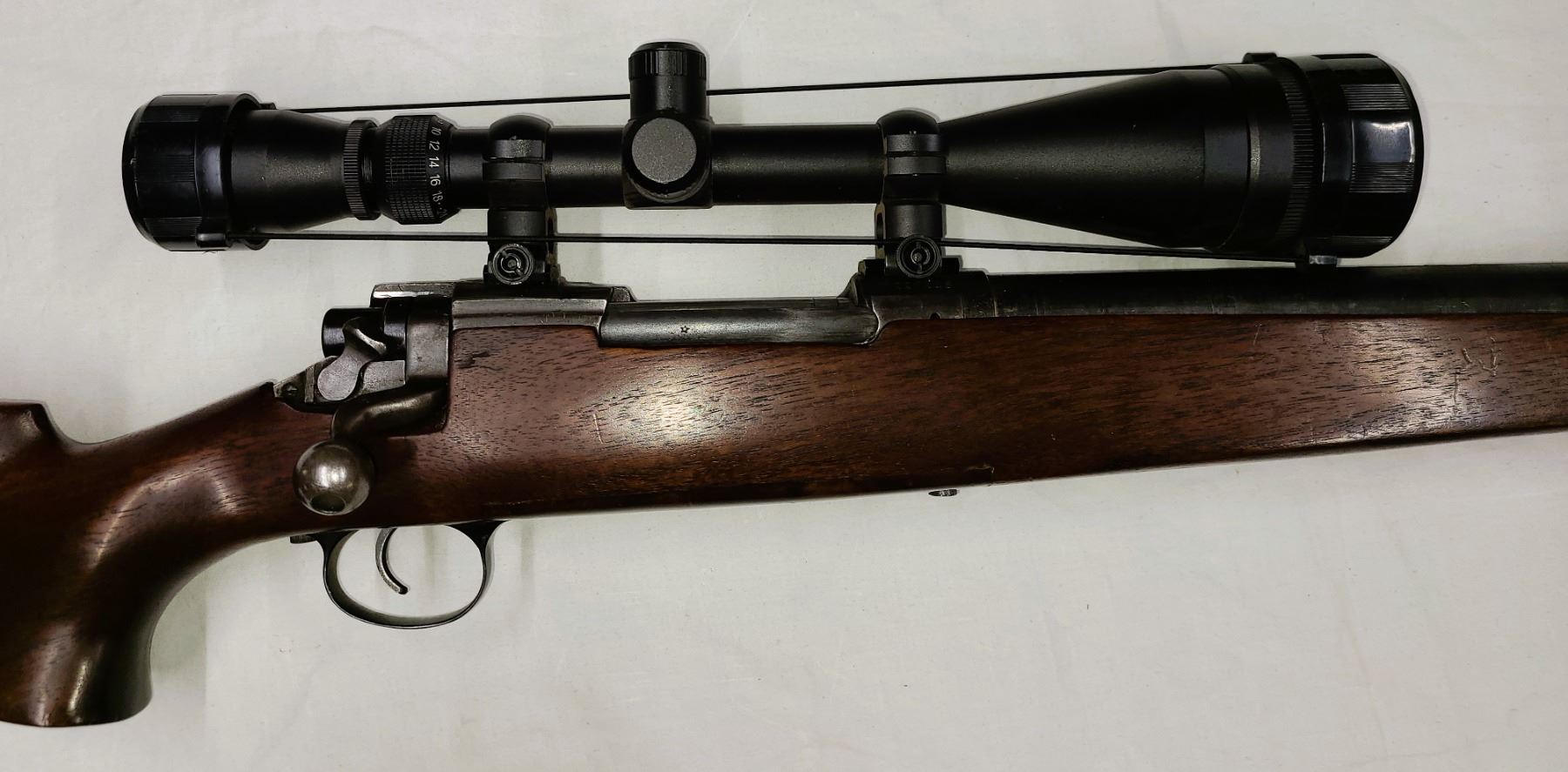 Gun weighs in at 14.8 lbs. Bolt and Receiver are matched with number W227218