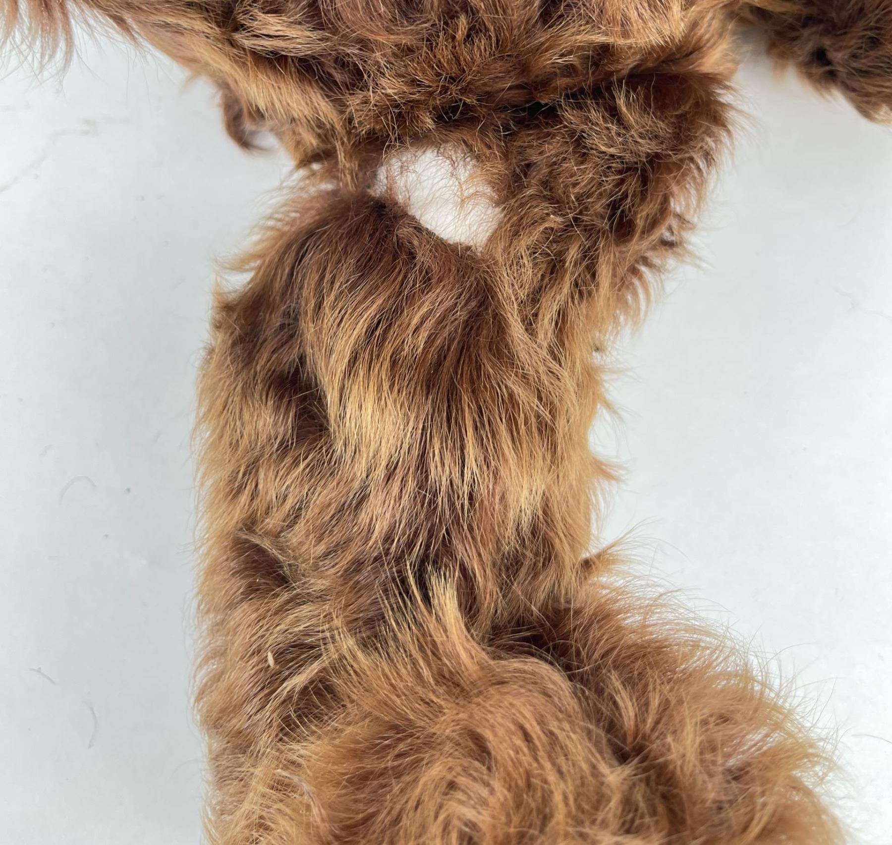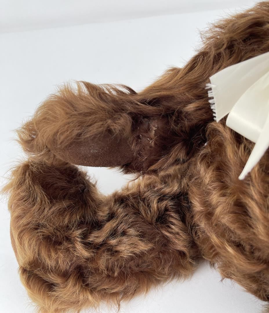 18 3/4" tall. A few loose stitches as shown. Growler.