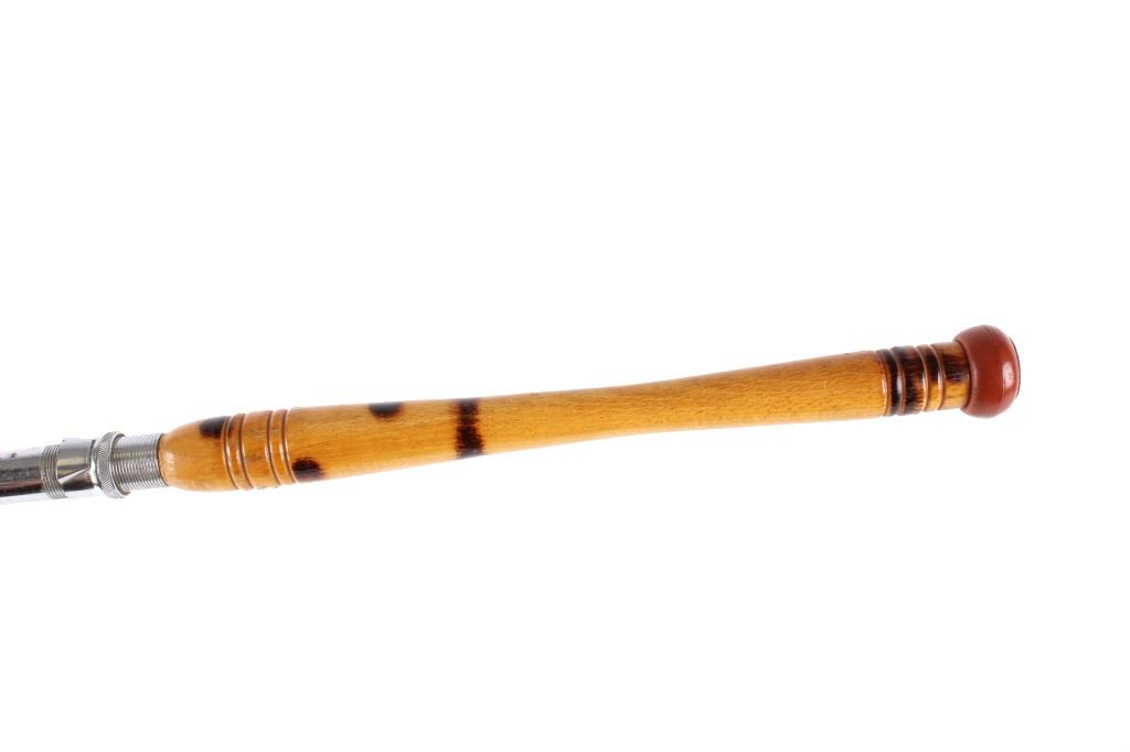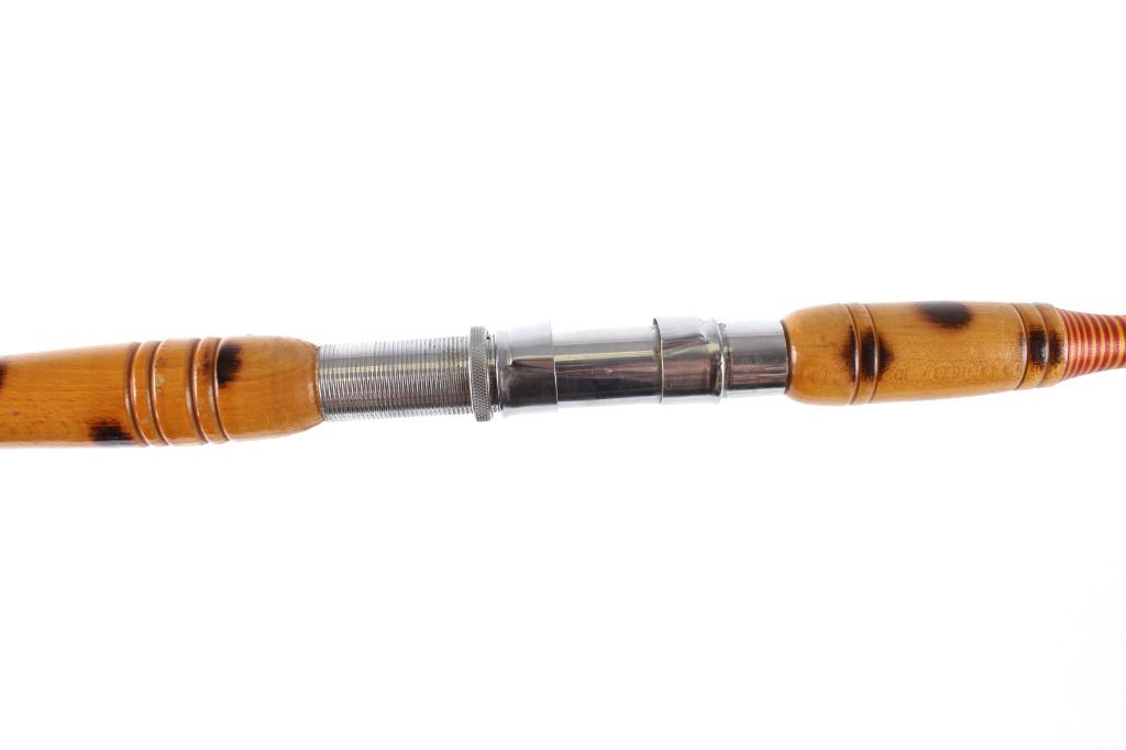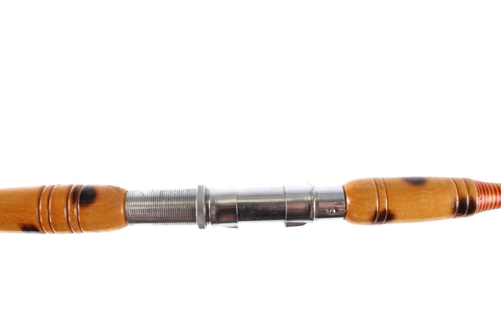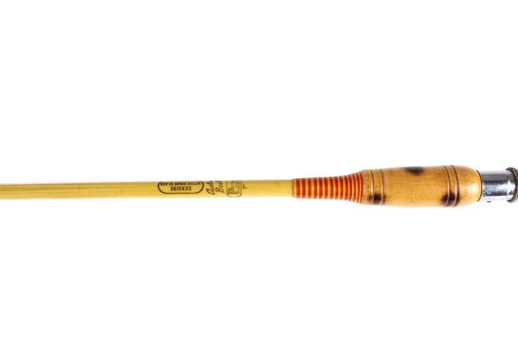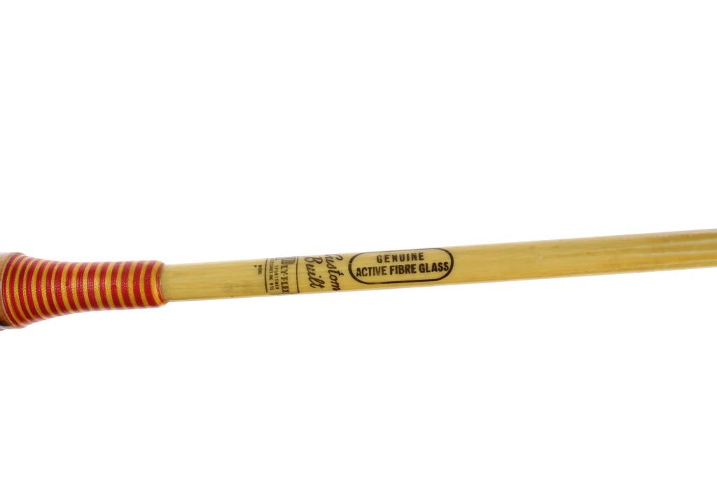 For your consideration is this custom made Ply-Flex Sportsman Accessories genuine active fibre glass rod circa 1970's. The rod shows a custom octagonal design with three fibre wrapped eyelets and turned and burnt oak accoutrements to the handle. The rod is marked Genuine Active Fibre Glass and Custom Built Ply-Flex Sportsman Accessories Inc N.Y.C. The condition of rod is good with no obvious signs of damage and in good working condition. The measurements of this is fishing rod is 60 1/2" x 1 1/2".