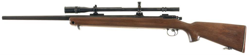 Fitted with a custom Gipson 219 Wasp barrel and Bishop match stock. With 10 power Unertl scope, extra bolt, 2 extra triggers, a .219 Wasp size die and seat die, approx. 55 primed 219 Zipper casings, approx. 900 primers, approx. 150 .22 cal. 53 gr. .224 spire HP and two unopened 100 count .22 caliber 55 gr. .224 Spitzer bullets.