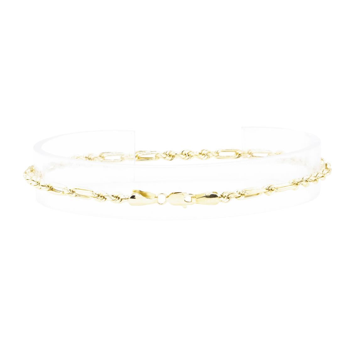 One custom rope chain measuring approximately eight inches in length and 3mm in width featuring: 14KT yellow gold weighing 2.8 grams.