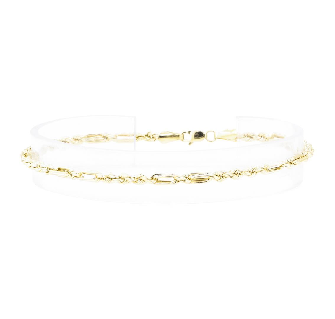 One custom rope chain measuring approximately eight inches in length and 3mm in width featuring: 14KT yellow gold weighing 2.8 grams.