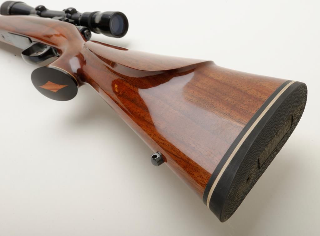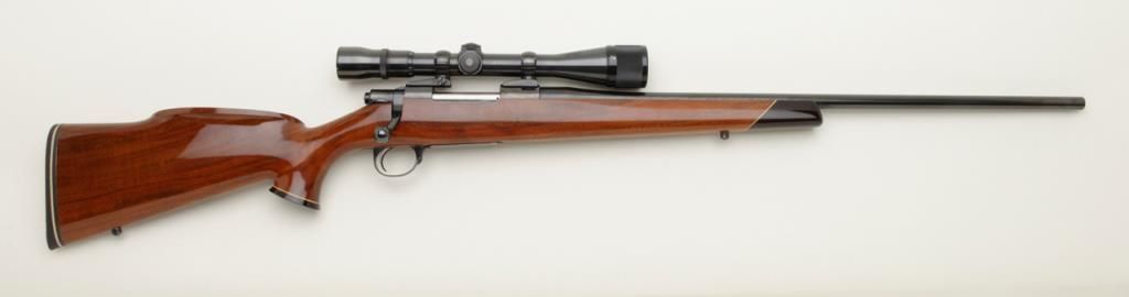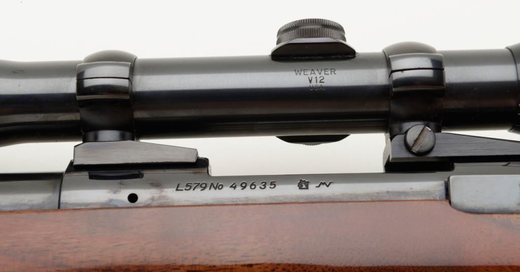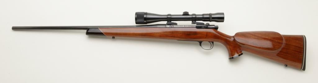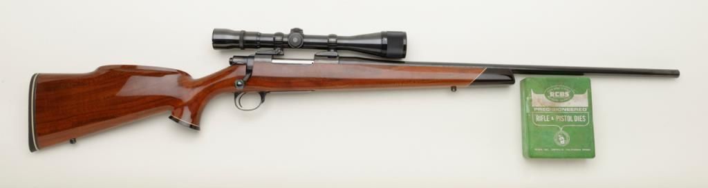 Custom Sako Model L 579 bolt action rifle, cal. .22-250, serial #49635. According to the consignor this rifle was custom built on the Sako action with a 24” Douglas Premium barrel. The rifle is in very good to near fine overall condition with a premium wood custom stock, with cheek piece featuring an ebony fore end and pistol grip. The rifle is topped by a Weaver V-12 4x12 variable power scope with clear optics. The bore is very good and may well clean to excellent. The lot includes a set of RCBS .22-250 reloading dies. This is a rifle that would cost thousands to duplicate at today’s prices. Est.: $350-$700 (Modern/PPT)