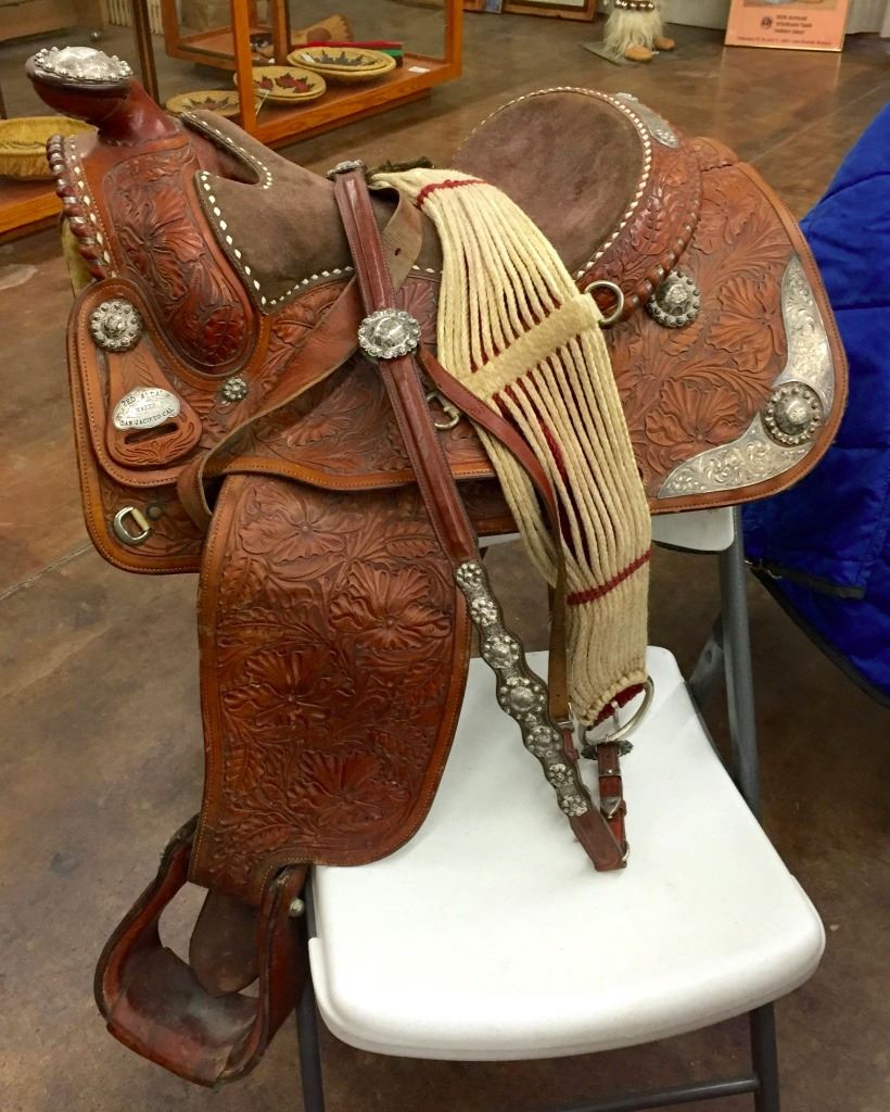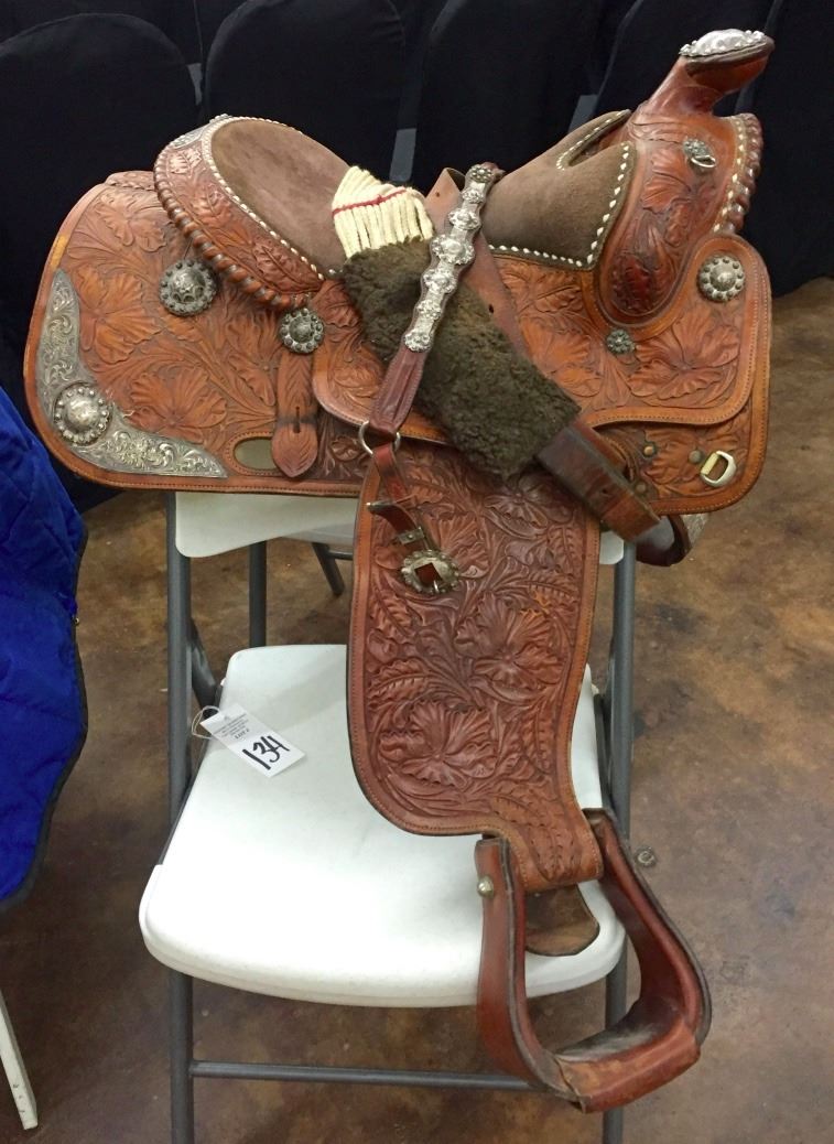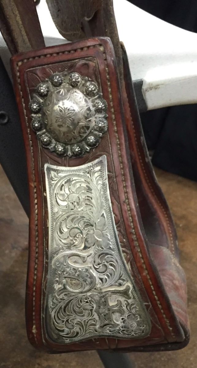 This custom saddle is adorned with what looks like sterling silver Concho's throughout. It comes with a matching breast collar and a saddle / stirrup covers. 15” seat. Very nice condition. Please look closely at the pics as they are an important part of our description. Shipping: There will be a $20 handling / packaging fee for shipping this lot. The actual cost of postage will be added on top of that.