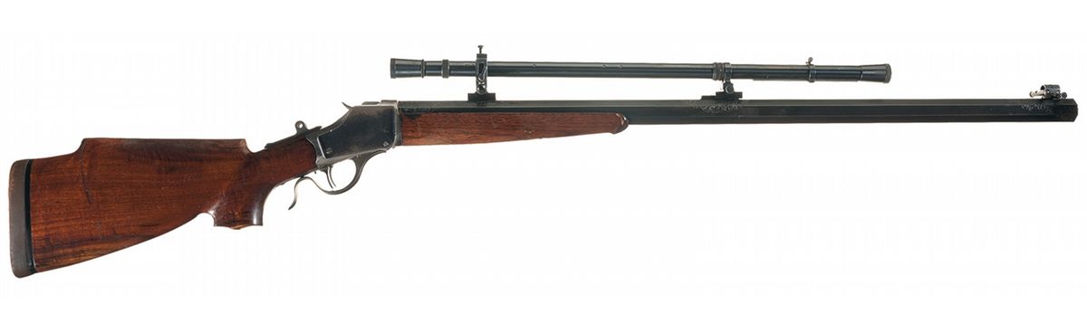 Custom Winchester Model 1885 High Wall Rifle with Engraved Vanwey Barrel and Scope