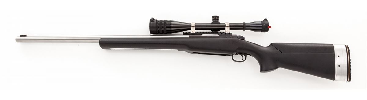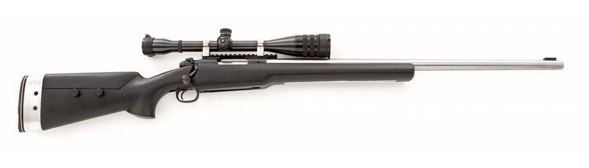 Custom Winchester Model 70 Bolt Action Rifle, #G1934253, .308 cal., medium-weight stainless steel 26'' barrel, blue finish, adjustable phenolic stock. Topped with a Weaver T-16 scope on Weaver rings and mounts. Condition is excellent showing only light use. Light crisp trigger, clear scope optics. Est.: $600-$800. (Modern)