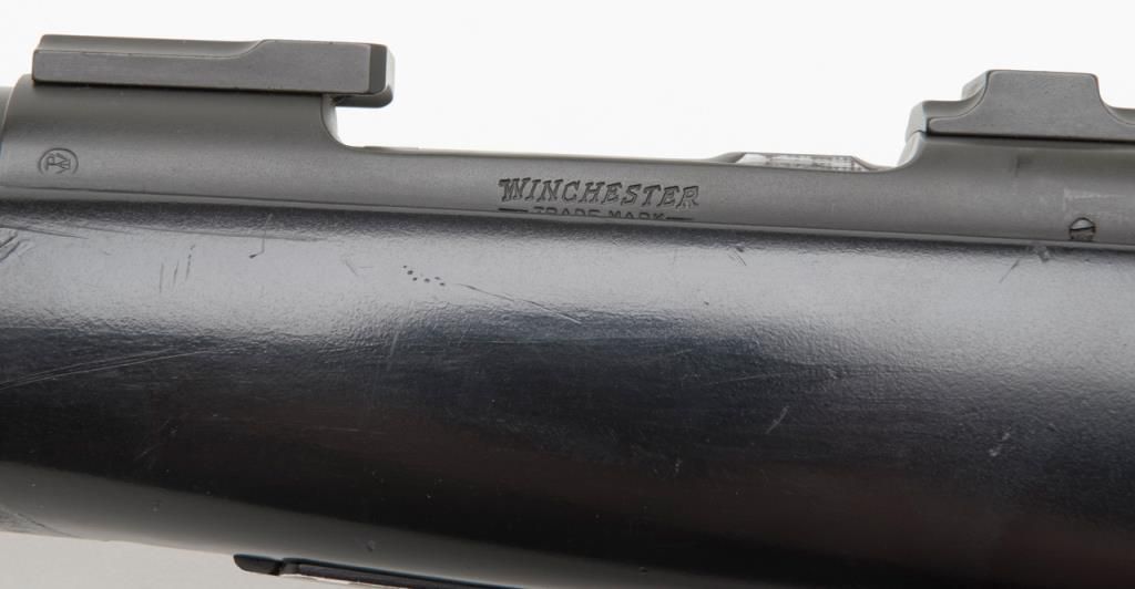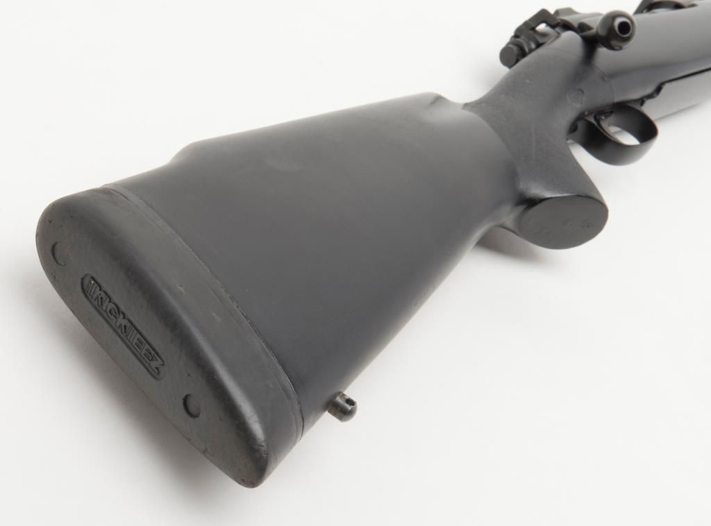 Custom Winchester pre-64 Model 70, #484496, .300 Win Mag cal., 24" barrel, matte finish, with quick detachable scope mounts and black composite stock. Rifle is in very good condition as customized, with aftermarket barrel, customtrigger, McMillan style composite stock with Kick Eez recoil pad. Bore is very good, action is good, stock shows some chips and losses, and looks to be spray painted black. (C&R) Est. 800-1600