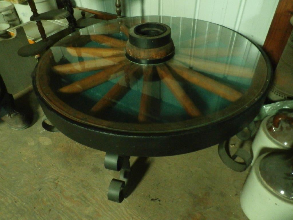 Wrought iron with glass top and bottom for item display if desired very nice piece