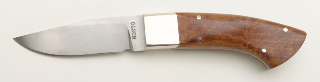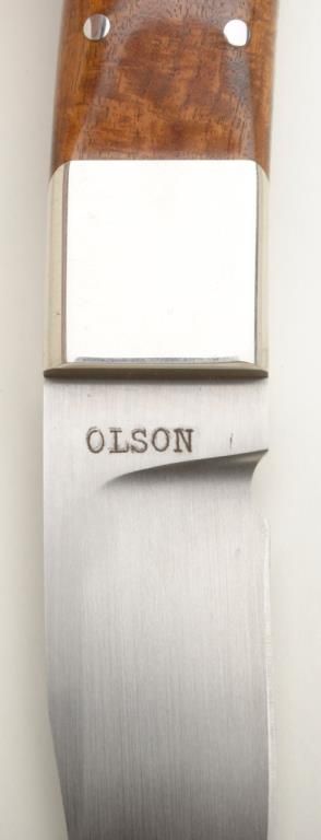 Custom knife with exotic wood handle, marked Olsen. Est. $100-300.