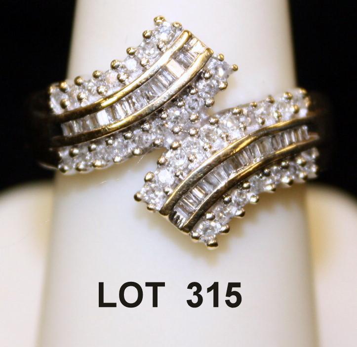 Custom ladies diamond ring, fancy and round diamonds, mounted in 14kt gold, approx. 1ct total. Est: $250 - $500