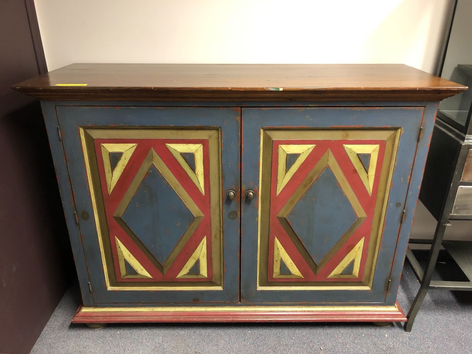 Custom-painted solid wood cabinet - approx. 61in wide x 22in depth x 45in height