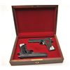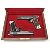 80/MK IV Gold Cup National Match semi-automatic pistols, .45 caliber, 5” barrel, blued finish, custom checkered wood grips with pearl accent bottoms, S/Ns FN102338 & FN28611, in overall near new condition. Accompanied by Colt factory blue hard case for FN102338. (Modern/PPT). Est.: $2,000-$4,000.