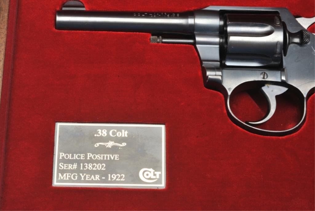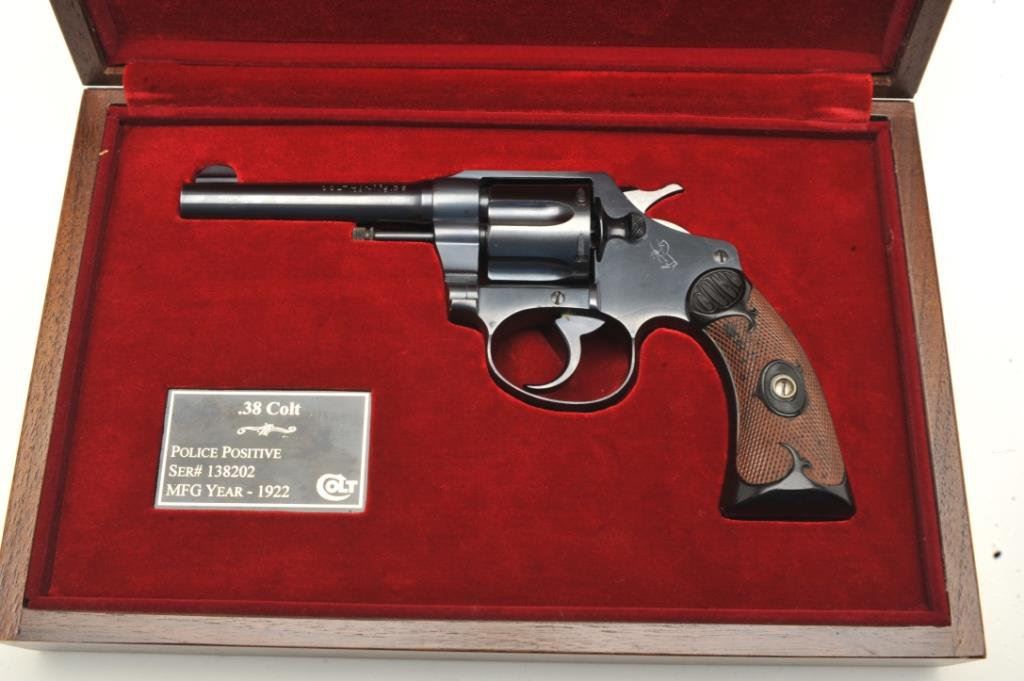 revolver, .38 caliber, 4” barrel, blued finish, checkered hard rubber grips, S/N 188202, in overall excellent condition showing little handling; checkering of grips display older red coloring. (C&R/PPT). Est.: $600-$1,200.