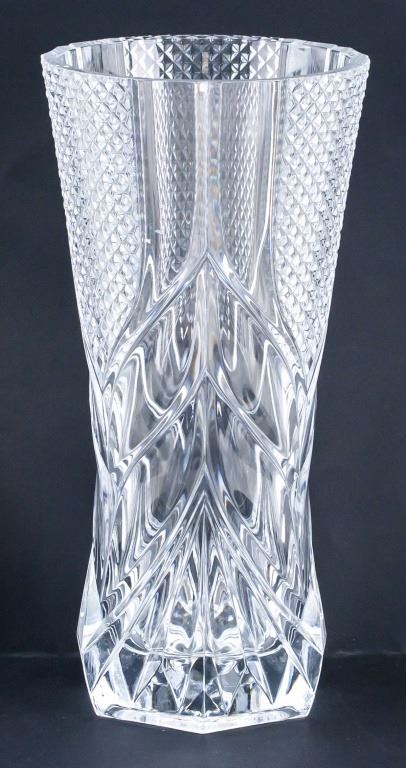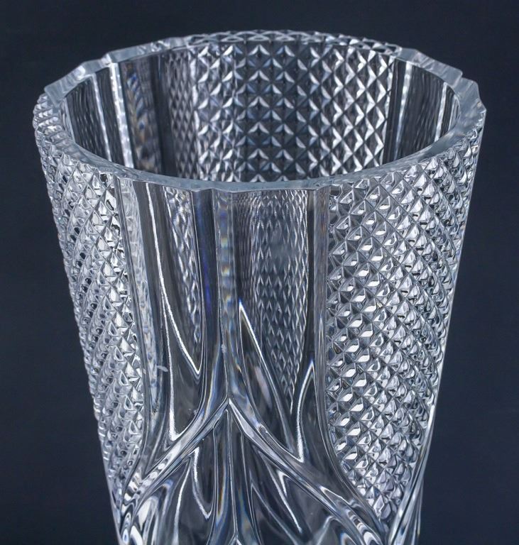 Cut crystal vase. Of cylindrical form. 29.5 x 14.5 cm. 3,188 grams.