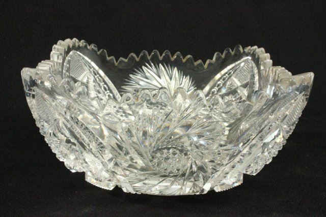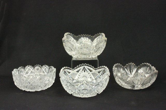 4 bowls- 3 round, 1 square hobnail and pinwheel pattern. Largest approx. 4 1/2" H x 9" D, square approx. 4 1/2" H x 8 1/2. From a NYC collector's 40 year compilation.