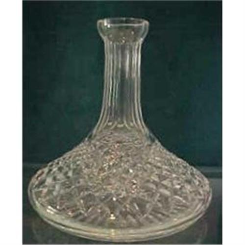 8 inch Tall ** 7 1/2 inch Diameter at Base ** Lovely Diamond Pattern with Paneled Cut Neck ** I am not sure if it had a stopper. ** The glass is very clear and no scratches ** 16 Point Star on Bottom ** Beautiful, Quality Glass