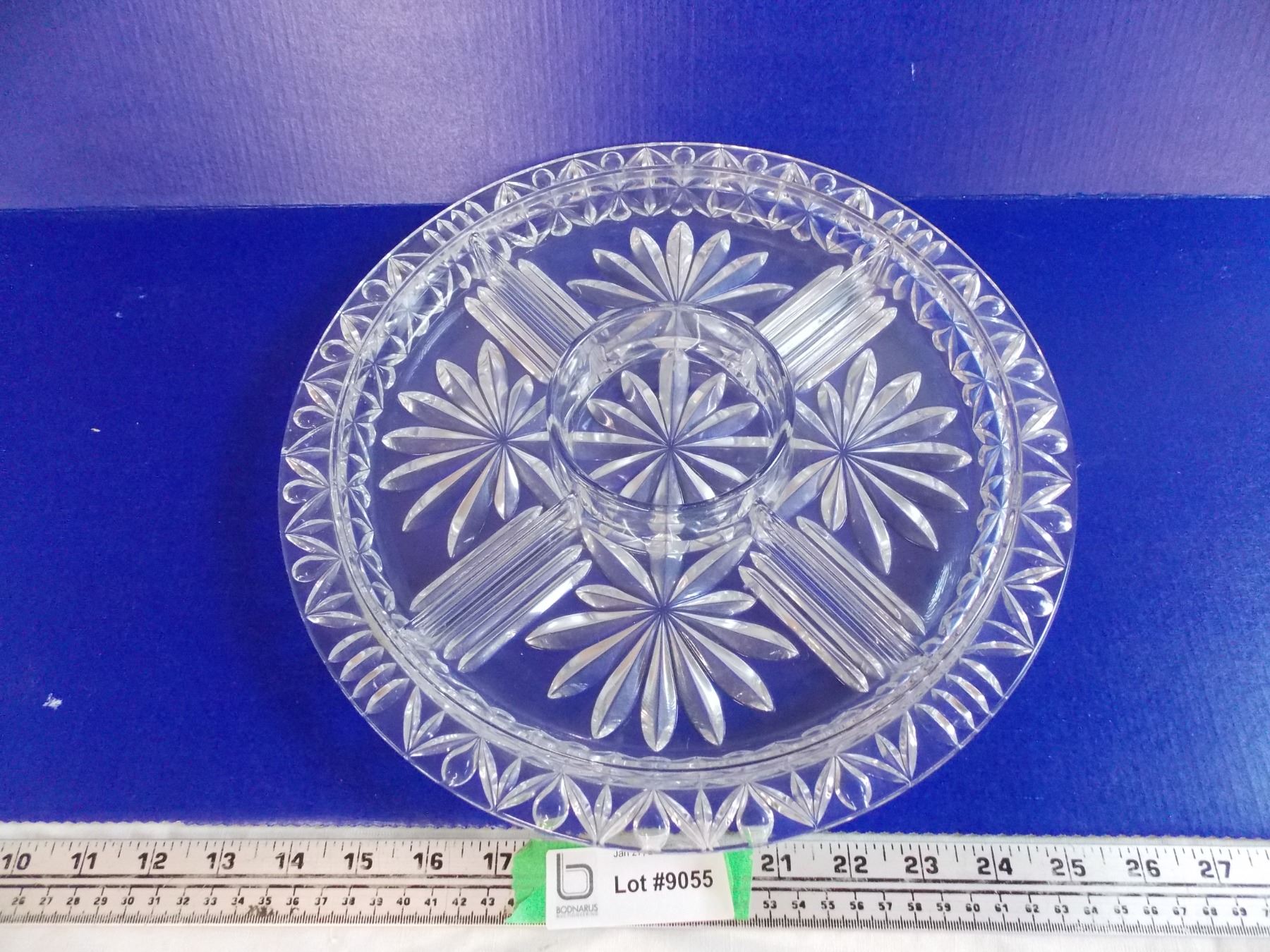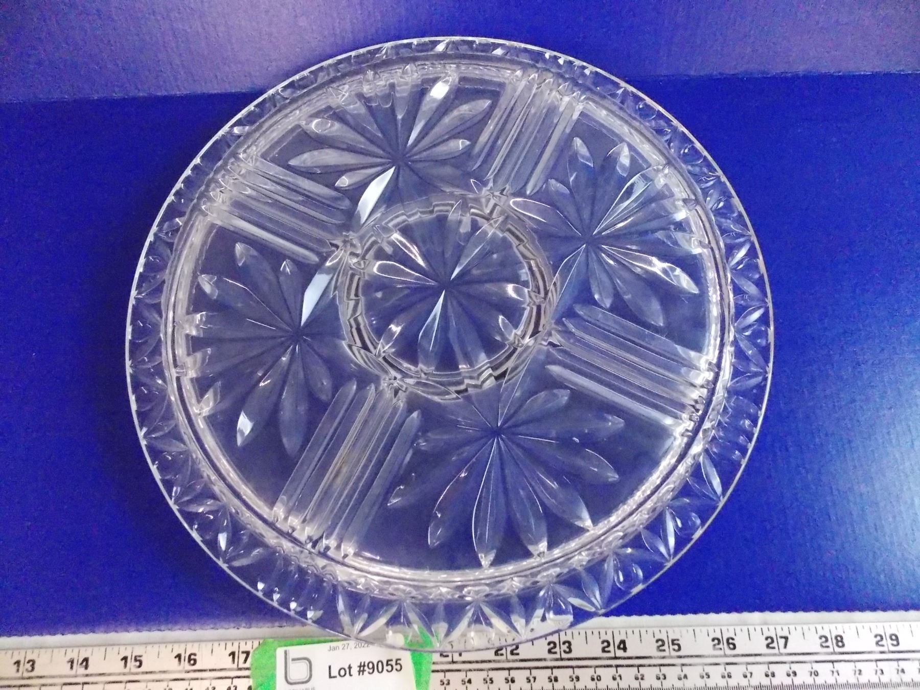 Cut Glass Divided Serving Platter - center dipper with 4 sections - 13" diameter