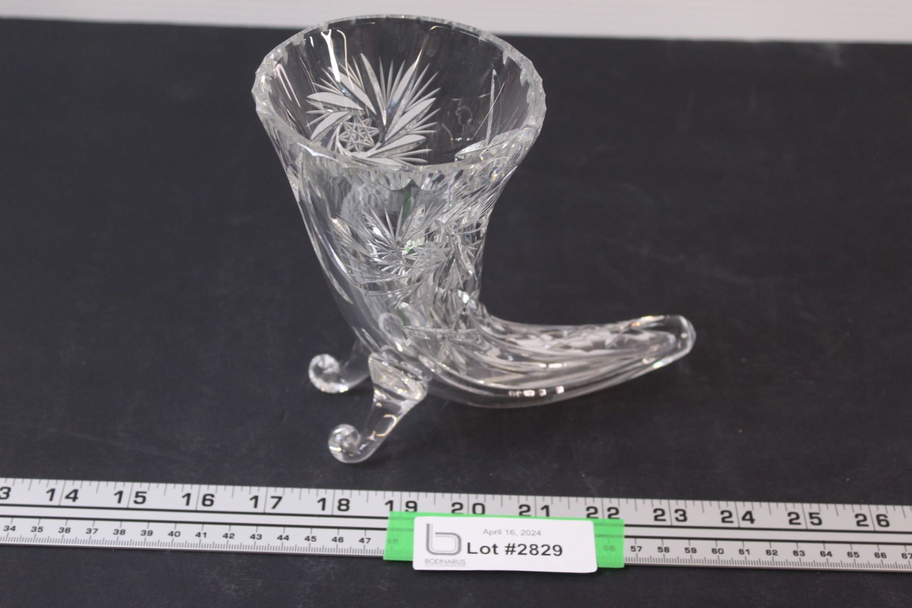 Cut Glass Footed Cornucopia pinwheel pattern - 6" x 6"