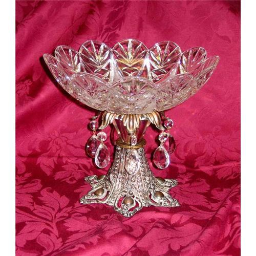 <tr><td>Title:Cut Glass and Crystal Compote on silver stand</td></tr>