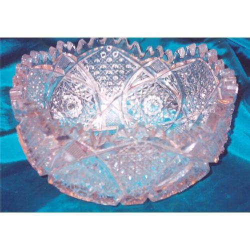 Cut glass 9 inch bowl. Slight chipping on edges only when you feel it.