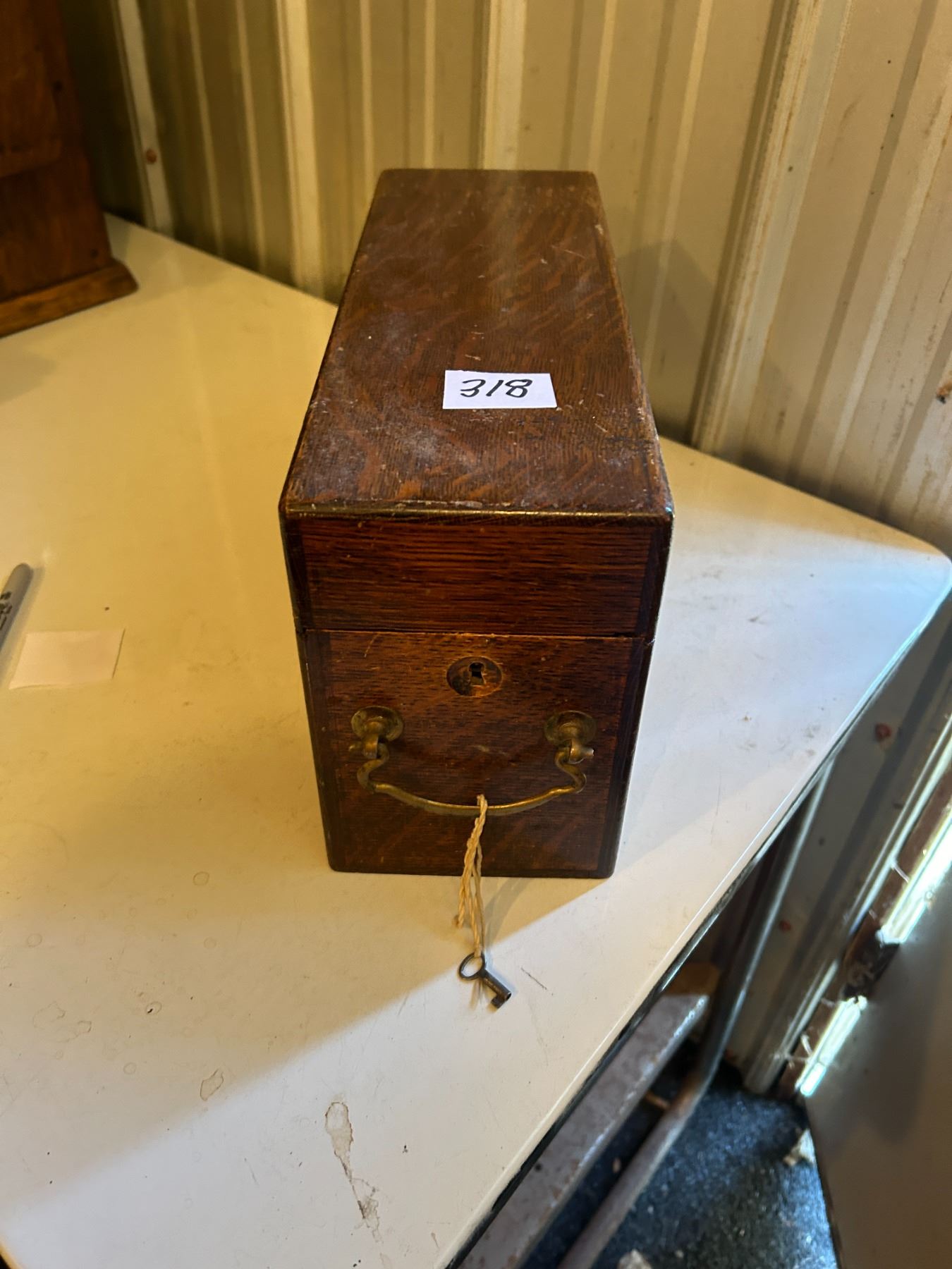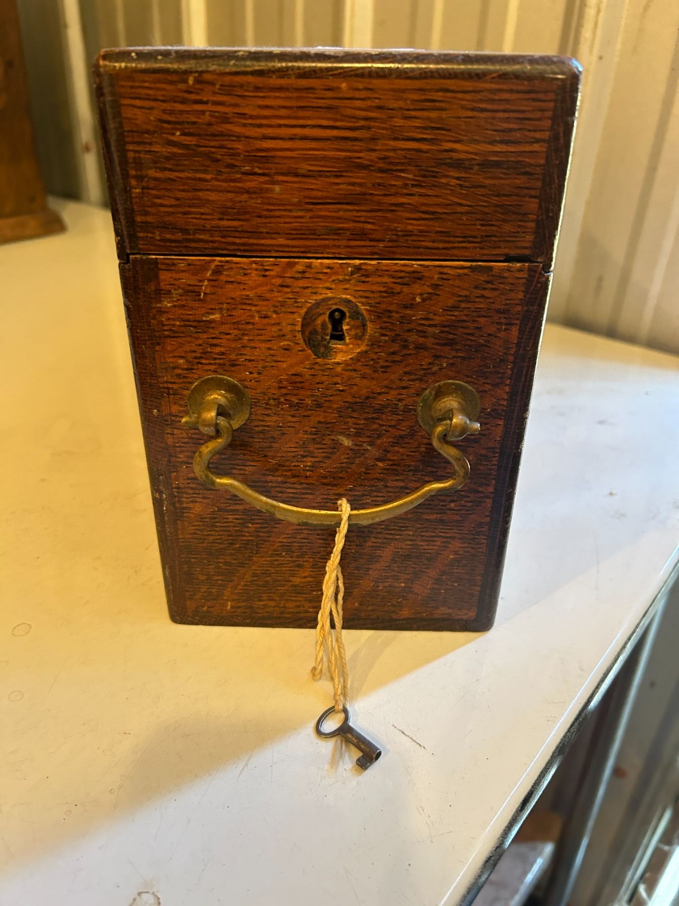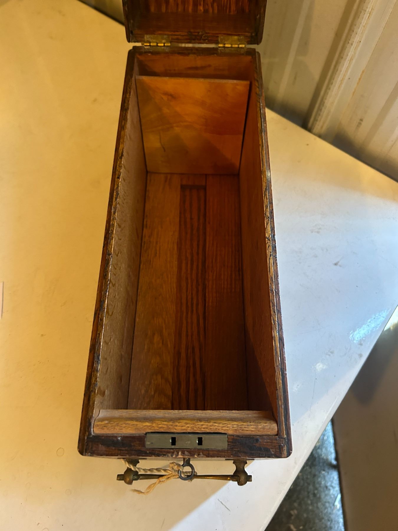 ¼ Cut Oak Document Box Comes With Key, 15” Long X 5 “ Wide X 8” Tall