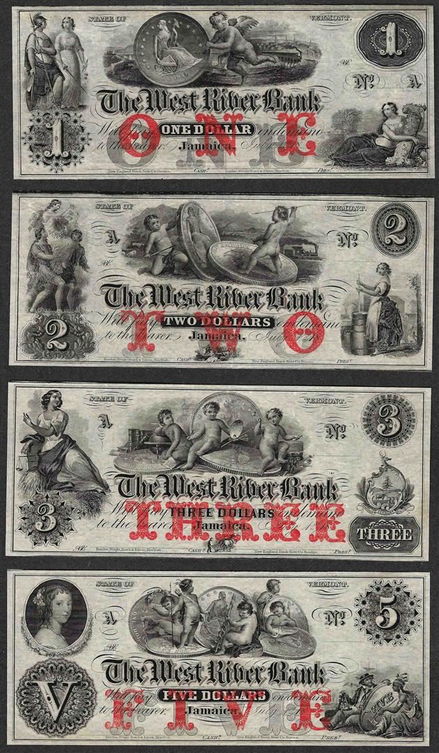 One Cut Sheet of $1/$2/$3/$5 The West River Bank Obsolete Notes.