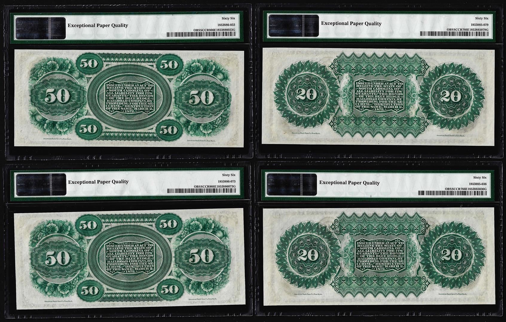 One Cut Sheet of 1872 $20 & $50 State of South Carolina Obsolete Notes PMG Gem Uncirculated 66EPQ. PMG Certified.