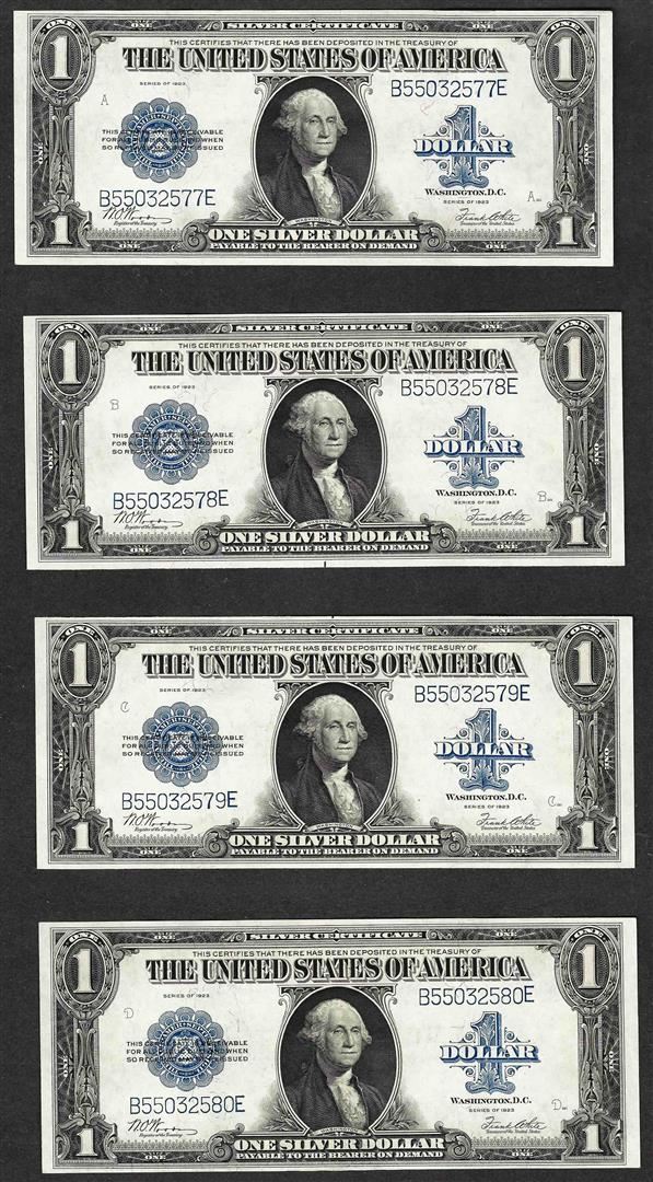 One Cut Sheet of (4) Consecutive 1923 $1 Silver Certificate Notes.
