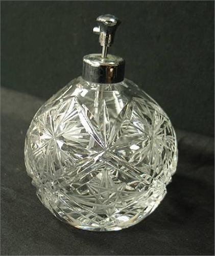 Cut glass atomizer with wheel cut designs stands 5" tall. No chips or cracks