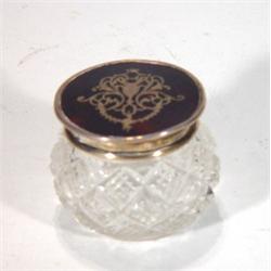 Cut glass pot with silver and tortoiseshell lid inset with swags, London, 1914, 4cm high